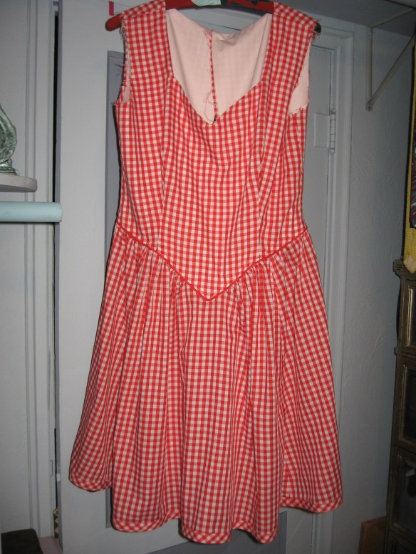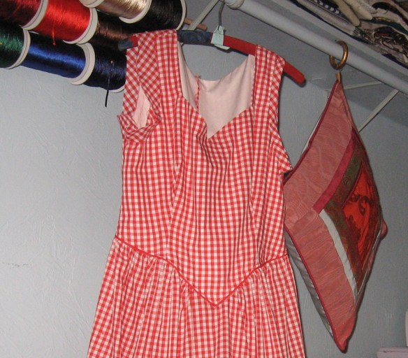 And of course, Ms. SpoolTeacher worked diligently on the Red Gingham Yoga Dress last night and she will be posting the progress later, but for now…here is a teaser…