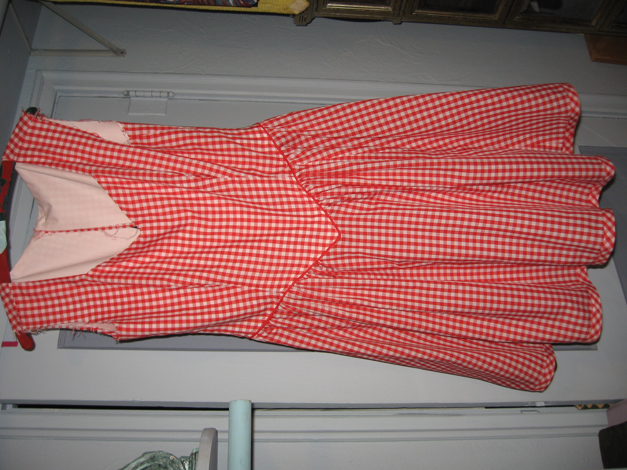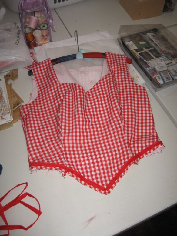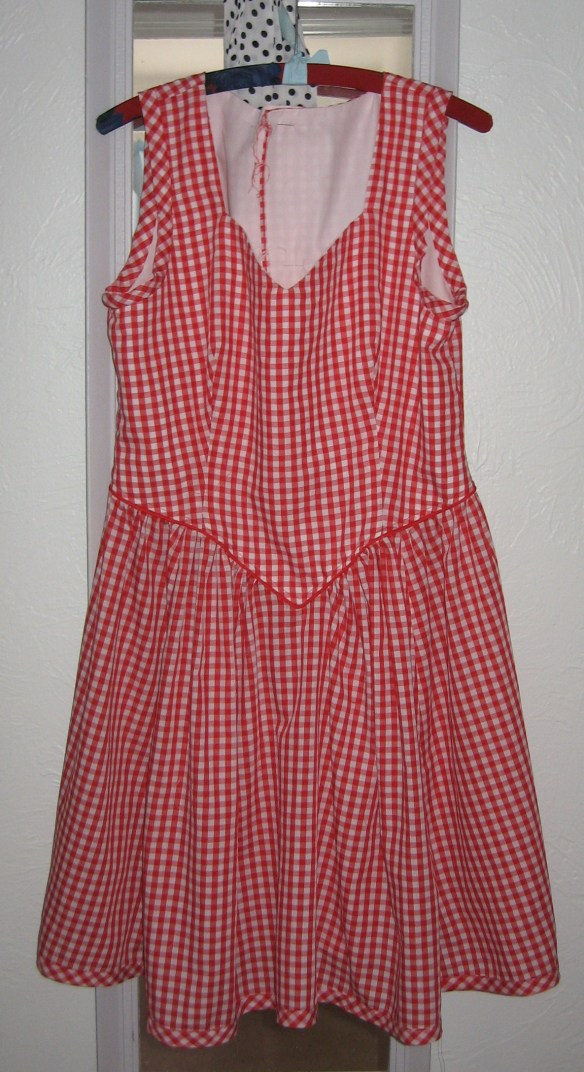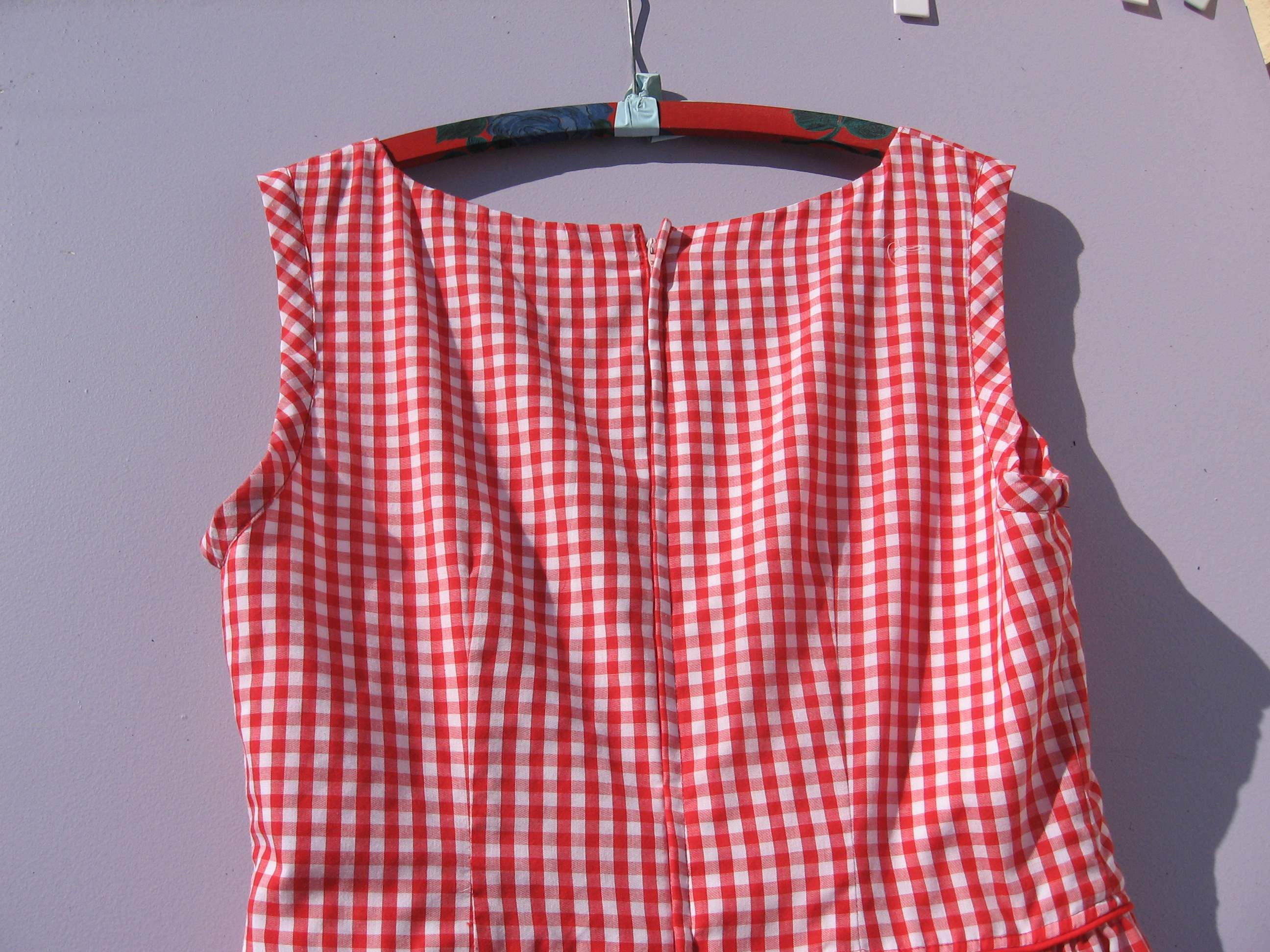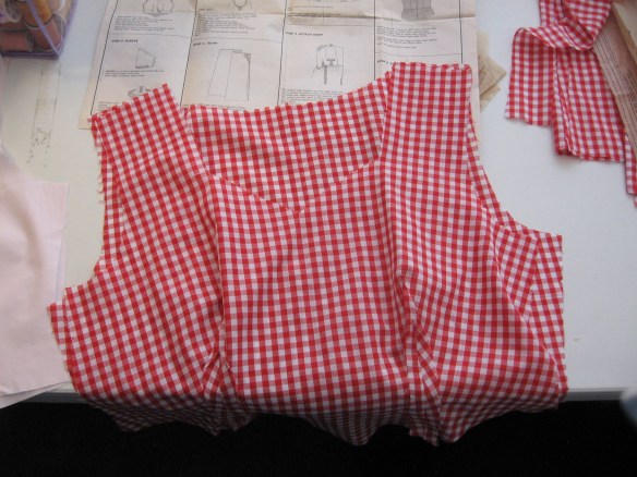 So, she decided to get on with her bucket list and make that red gingham dress that has been in her minds-eye forever. Red gingham has some kind of magic power over her emotions and can calm her like yoga.