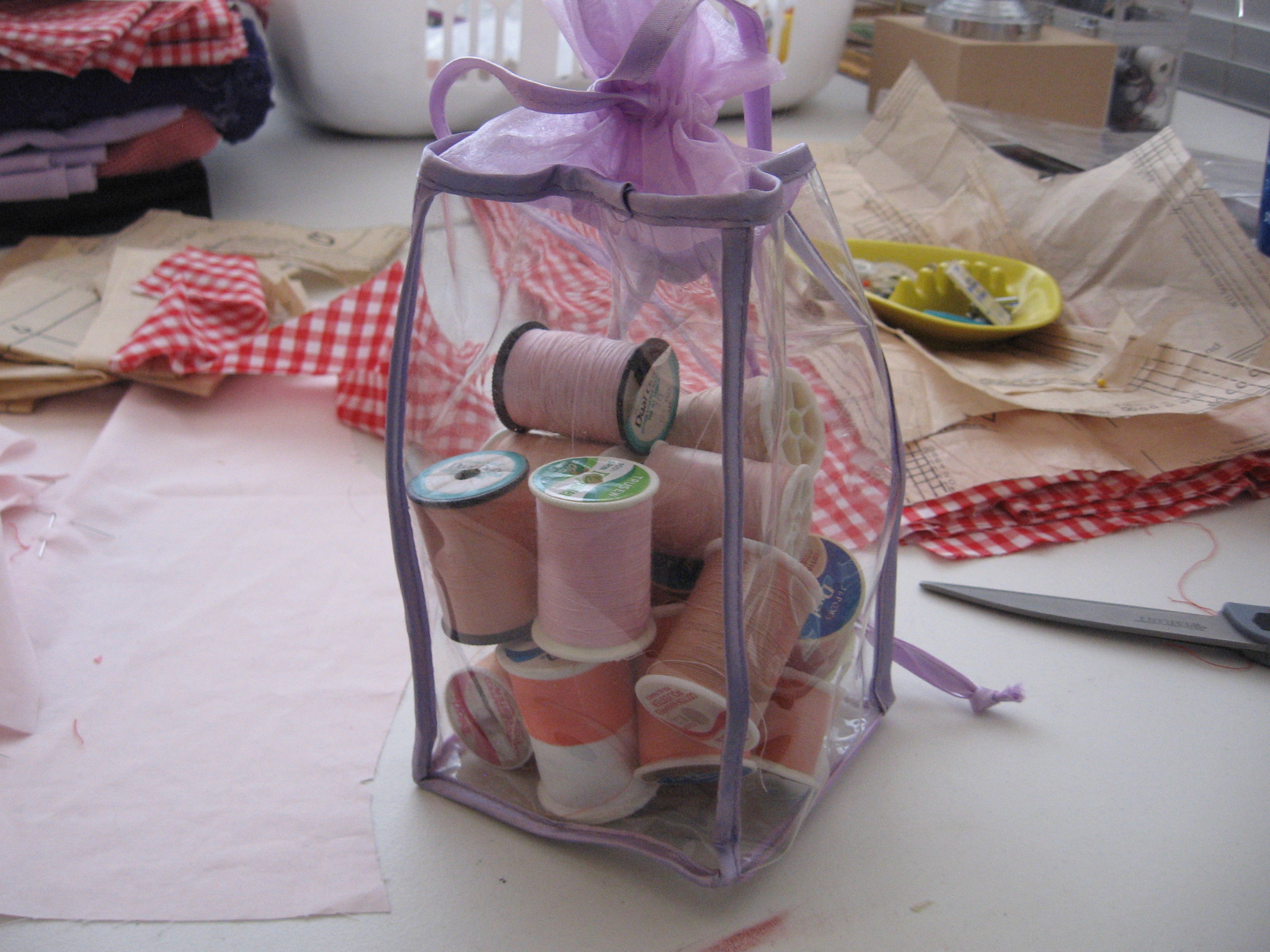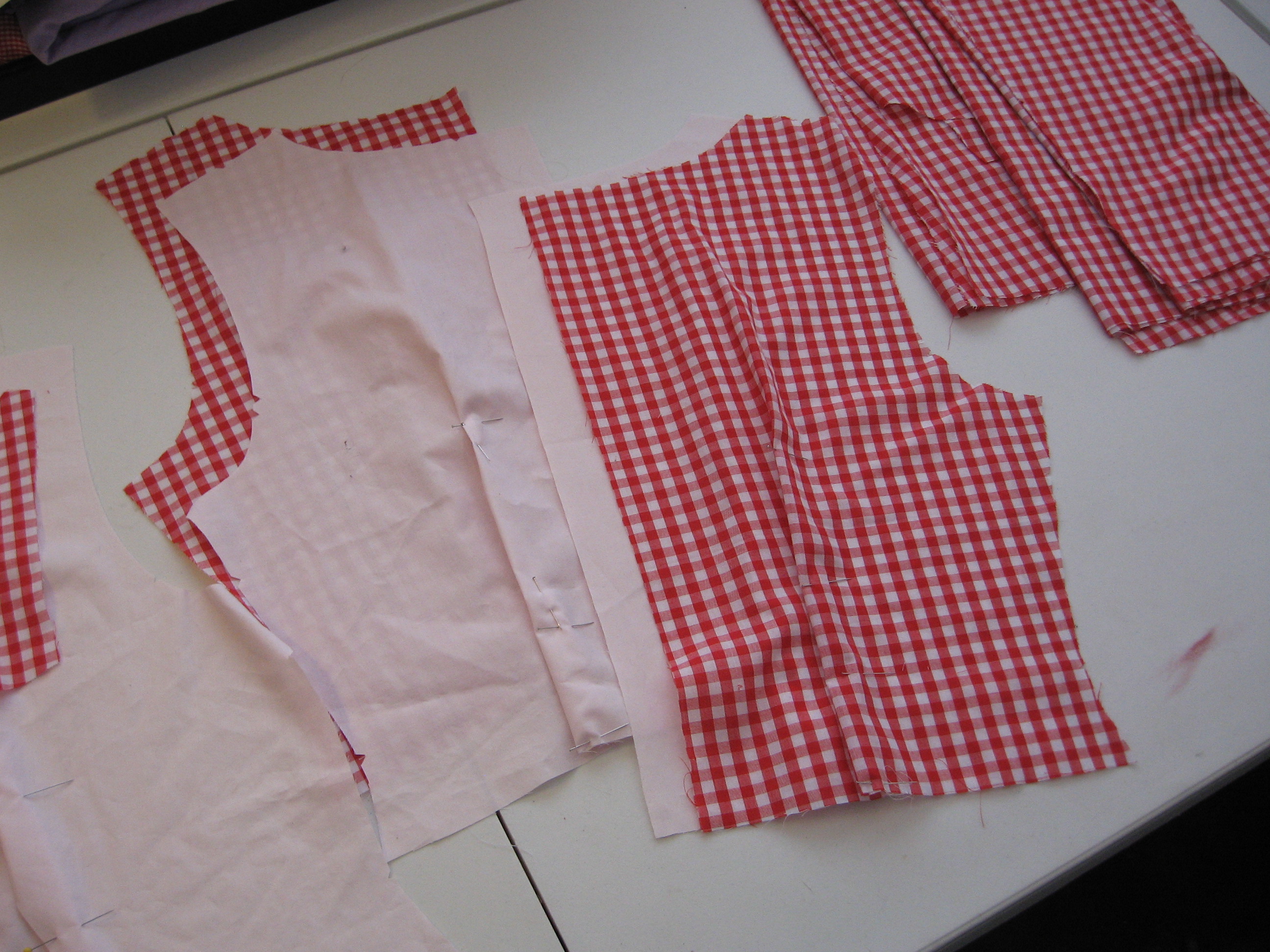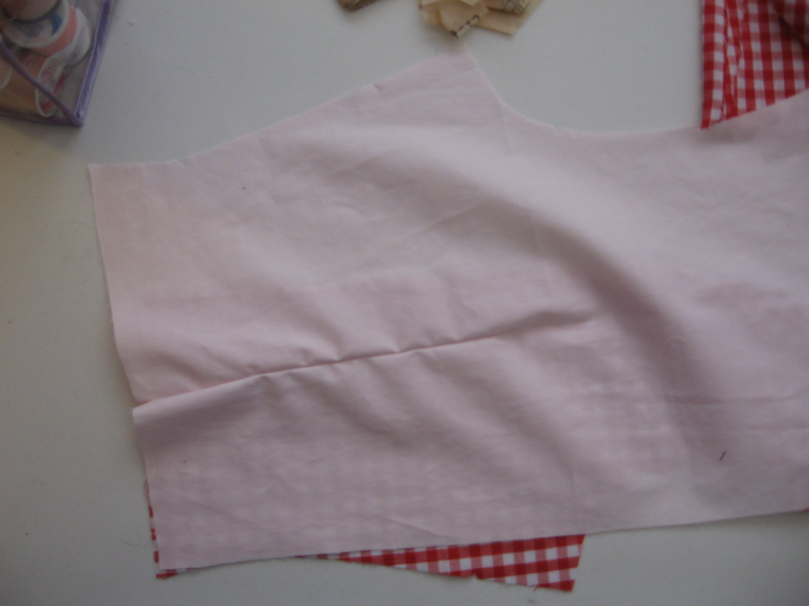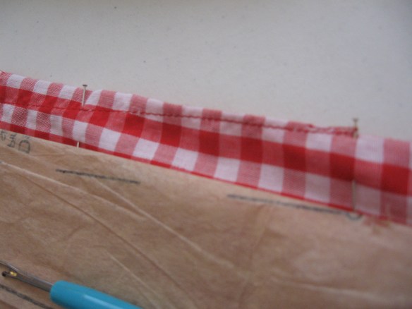 Here’s what Ms. SpoolTeacher did with a spool of red thread… and 6 yards of red gingham (though she did not use it all by far). So she went with the pattern on the right.