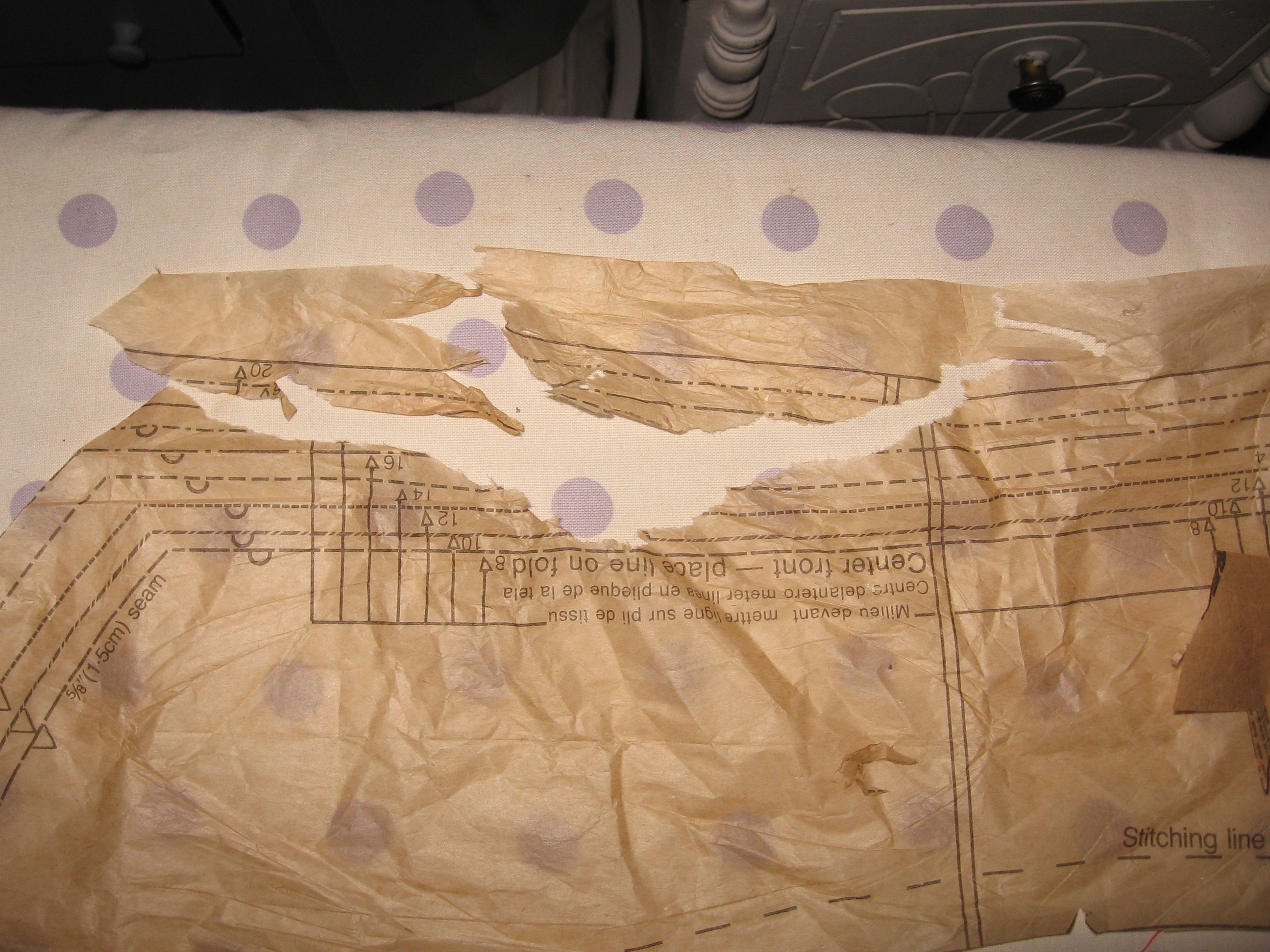 We’ll fix the closure a little better later. And since it doesn’t fit quite as well as had hoped, buttons on the sides and a nice big bow-tie for the back.