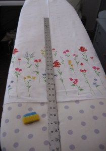 The next maneuver was to determine what length she would want. She used her metal yardstick and marked the measurements across the width with her blue chalk. (Measure Twice Cut Once!)