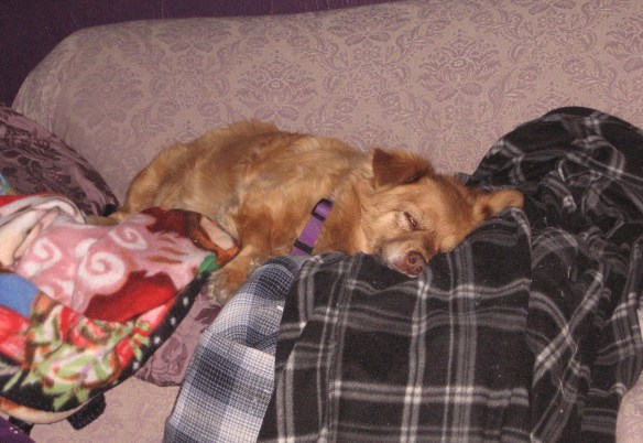 … and Little Red-Haired Girl was happy to snooze away the day on her pedestal of fluffy soft things up on the doggy sofa.