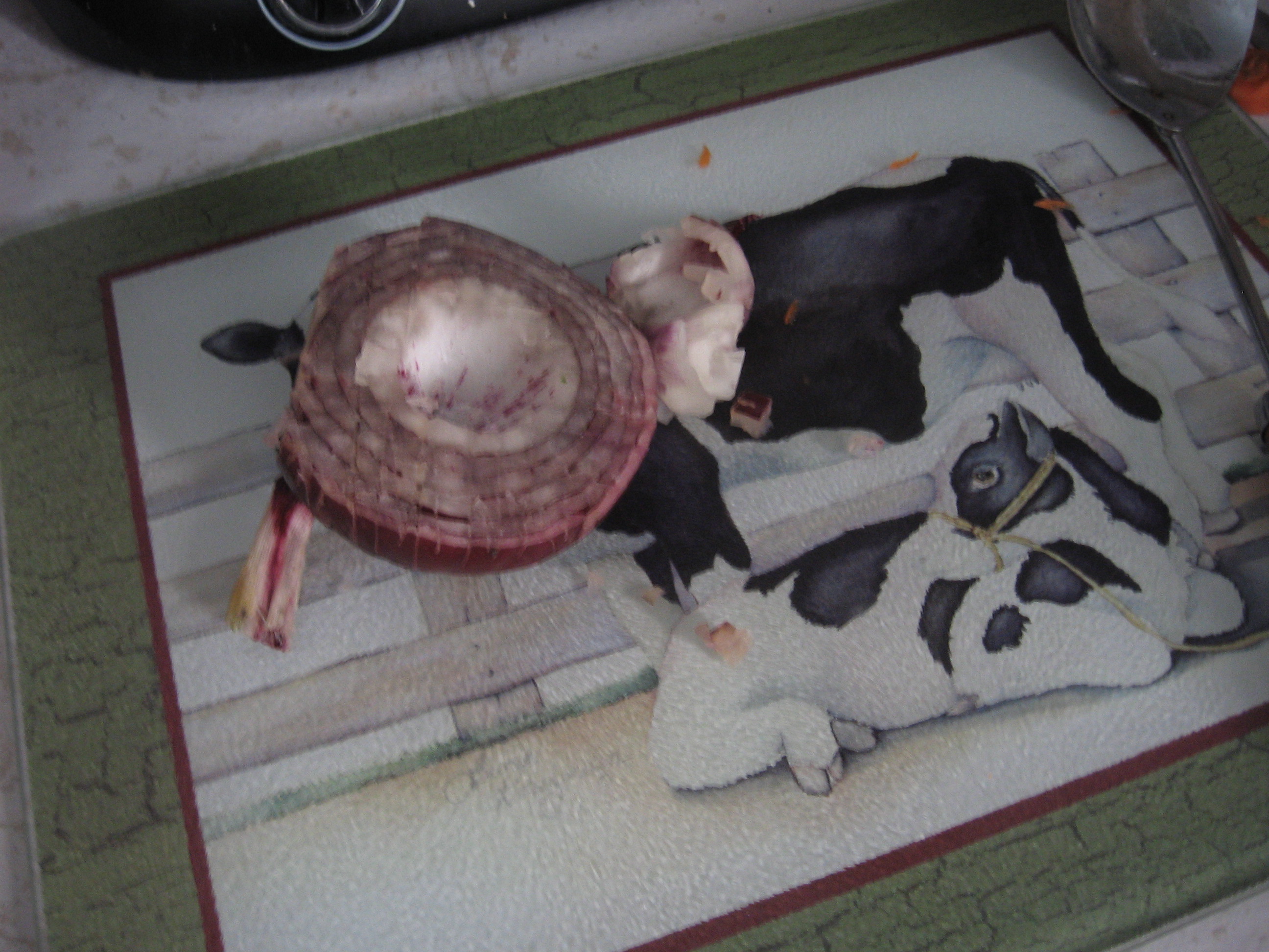 This was a piece of onion she had been dicing off of for salads. It was just about enough, almost 1/2 of a large Red Organic Onion.