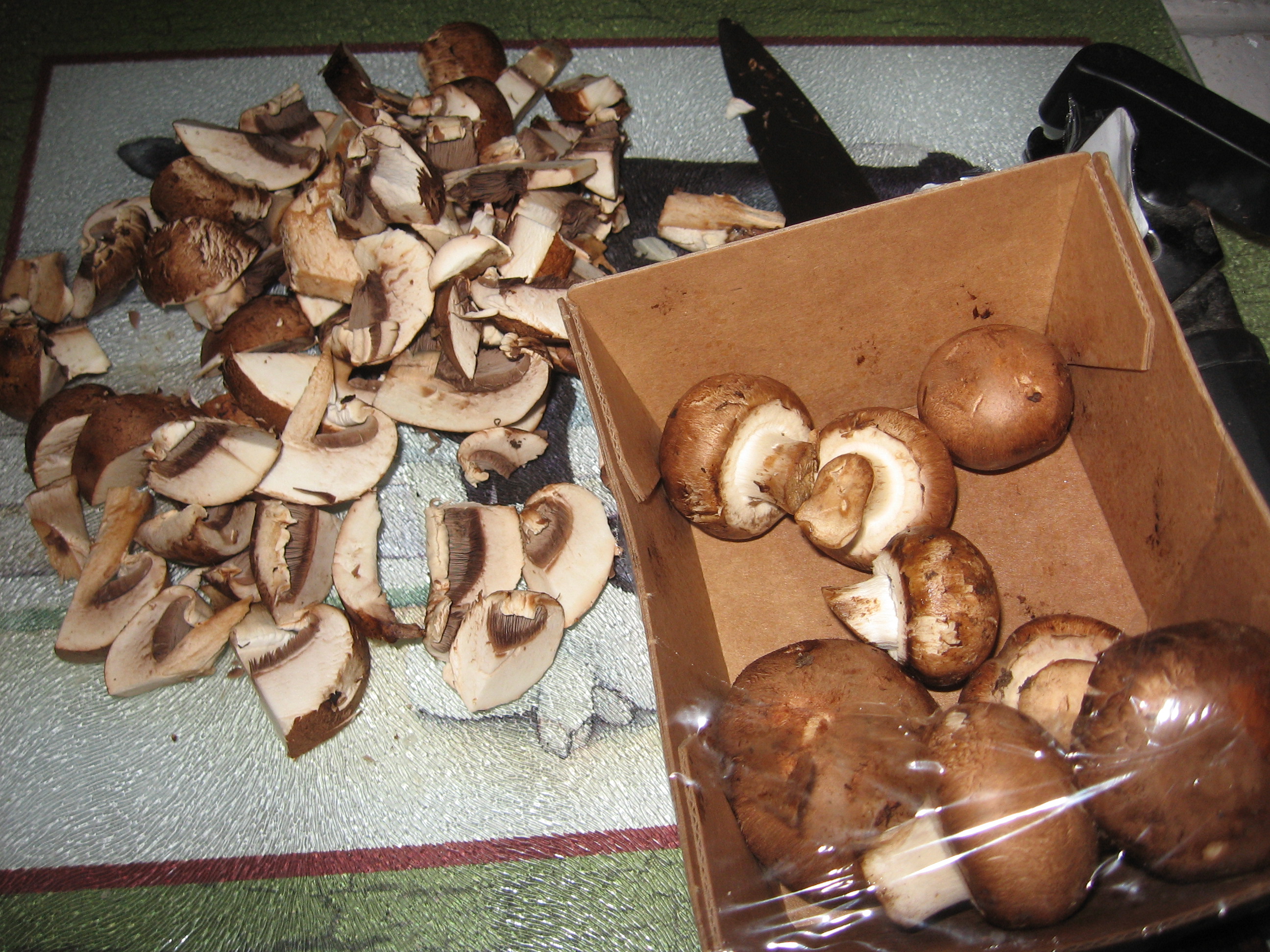Add about one half package of Baby Bella Mushrooms, cut coarsely.