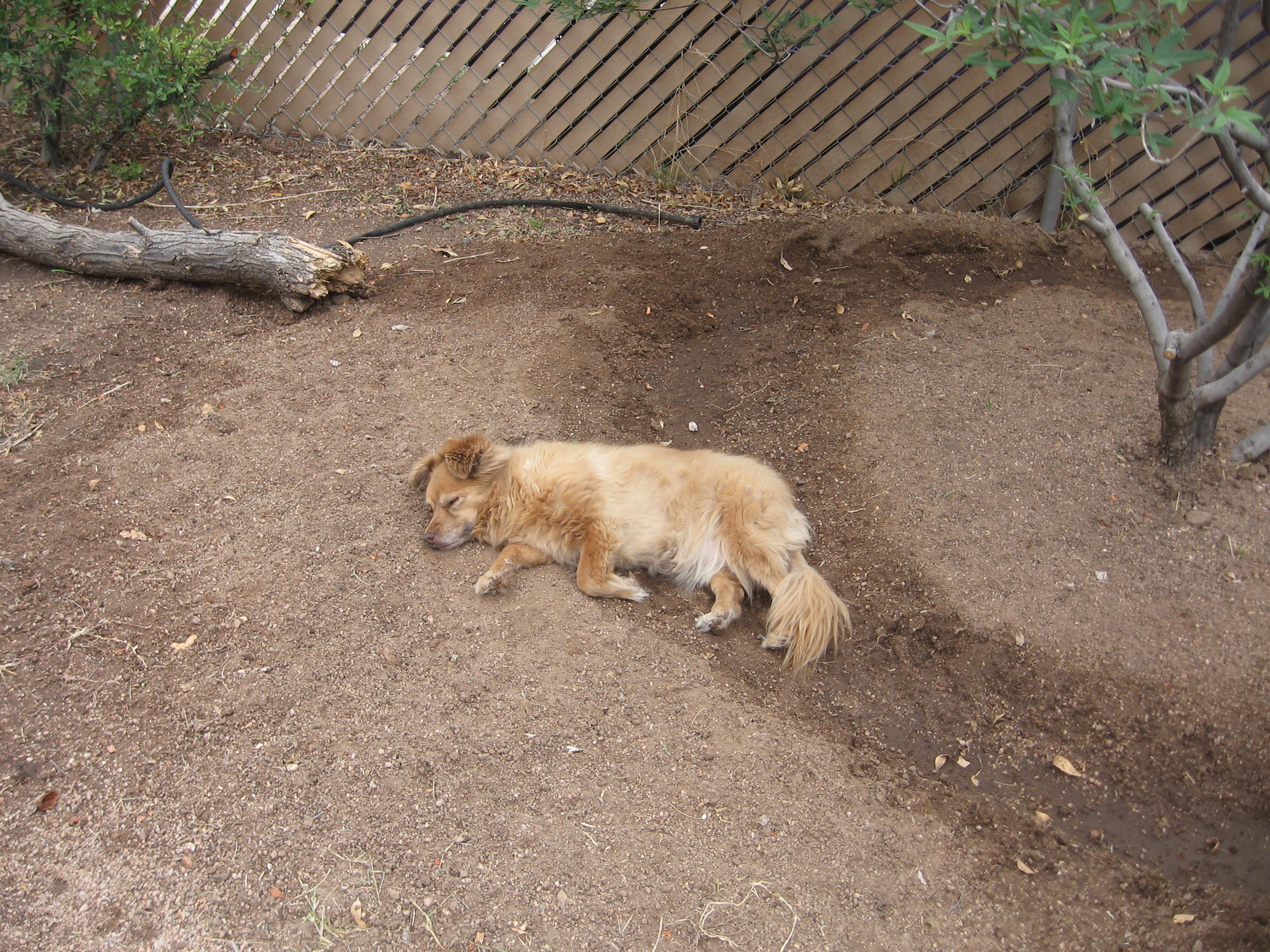 “Thanks Mom for making me a dirt pillow and a cool place to lay.” Sweet Little Old Red-Haired Girl deserves to have everything exactly the way it makes her happy. She is a senior and we want no regrets.