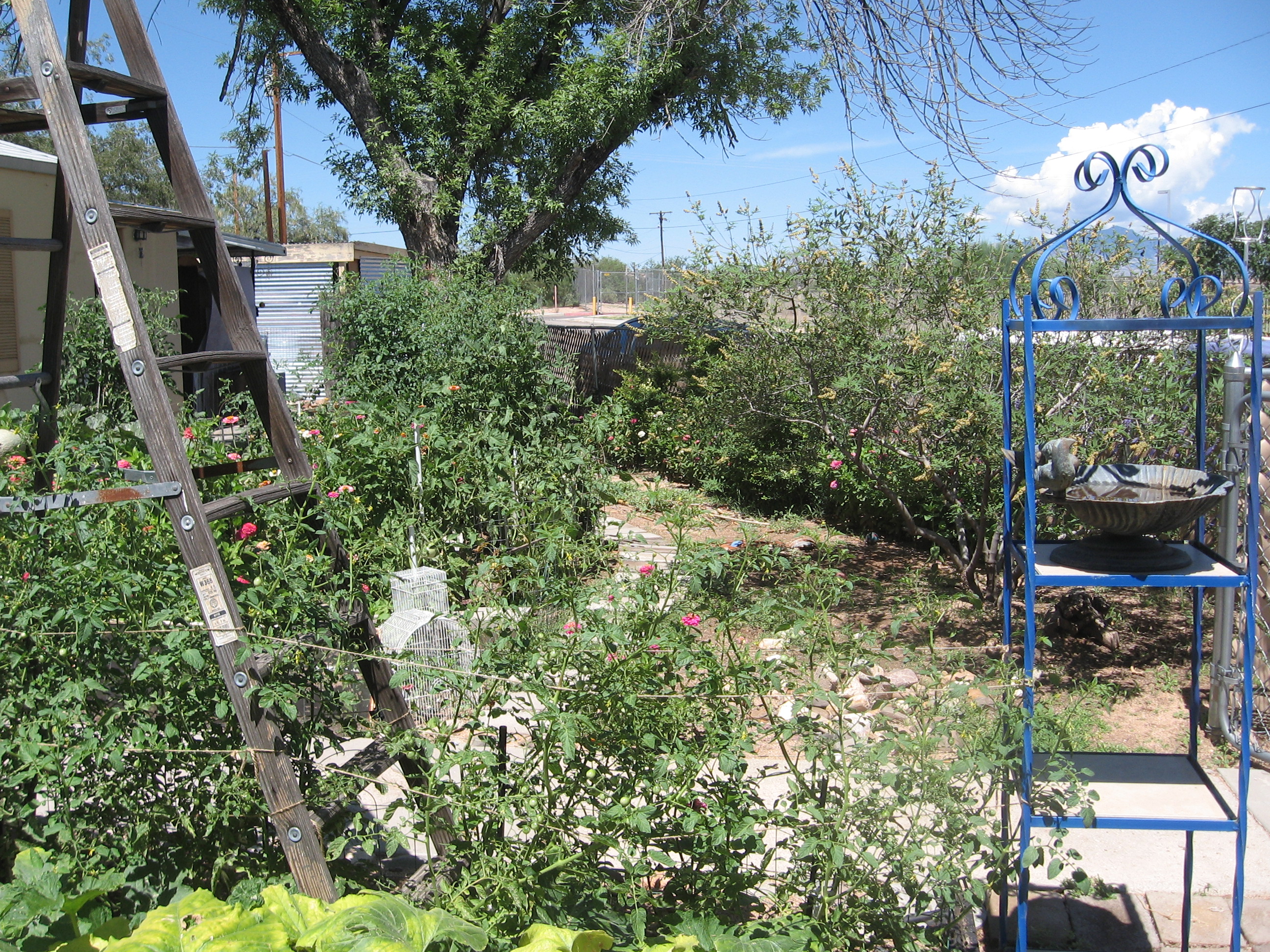 It’s a sanctuary for birds, bees, lizards, bugs and puppies. Even a big old frog was sitting at the door one day wanting out…yes, it had gotten in somehow and wanted back out into the lush cool undergrowth…