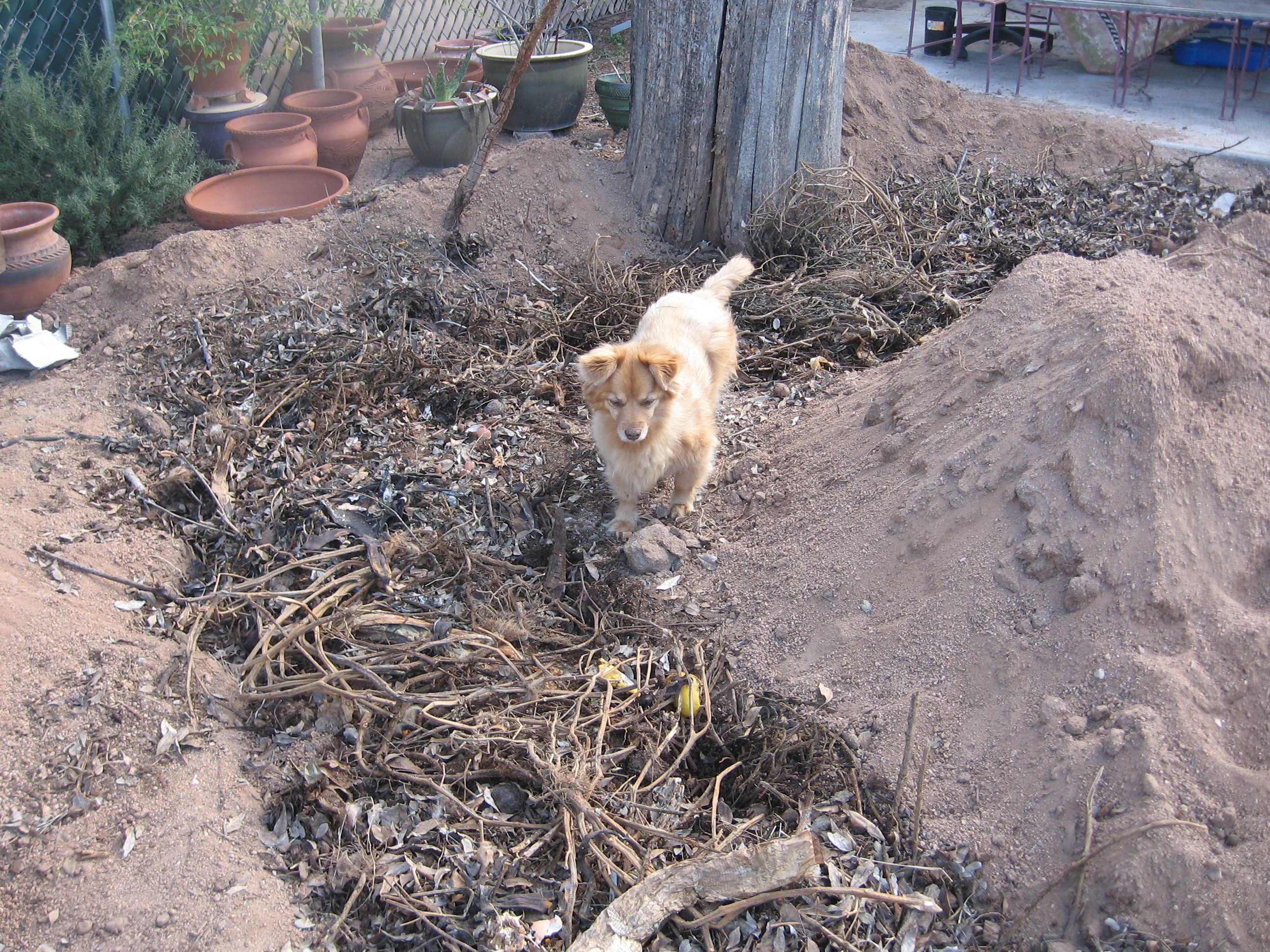 Then the composted material, and dry leaves.