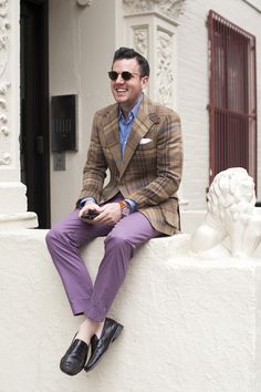 They were my purple socks, but they went with his new, slightly purple slacks and he was trying to become more attuned to fashion