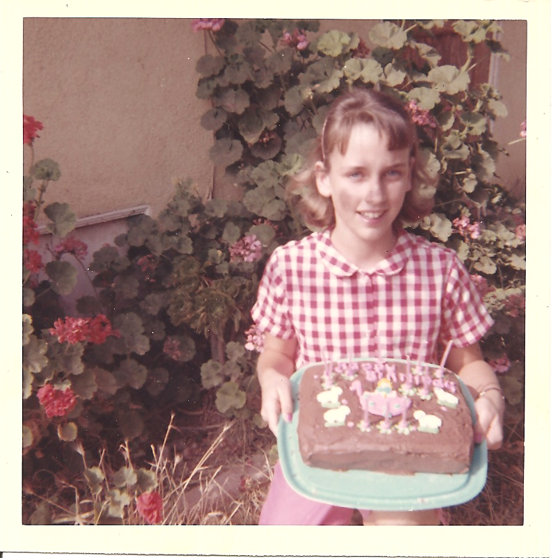 When she was about nine, she had the red gingham blouse she is wearing in the picture above and just loved it. She has had a passion for red gingham ever since. That was a particularly special time in her life as her babysitter, who made her that chocolate cake, favored her above her sisters and so many other memorable things happened at that time.