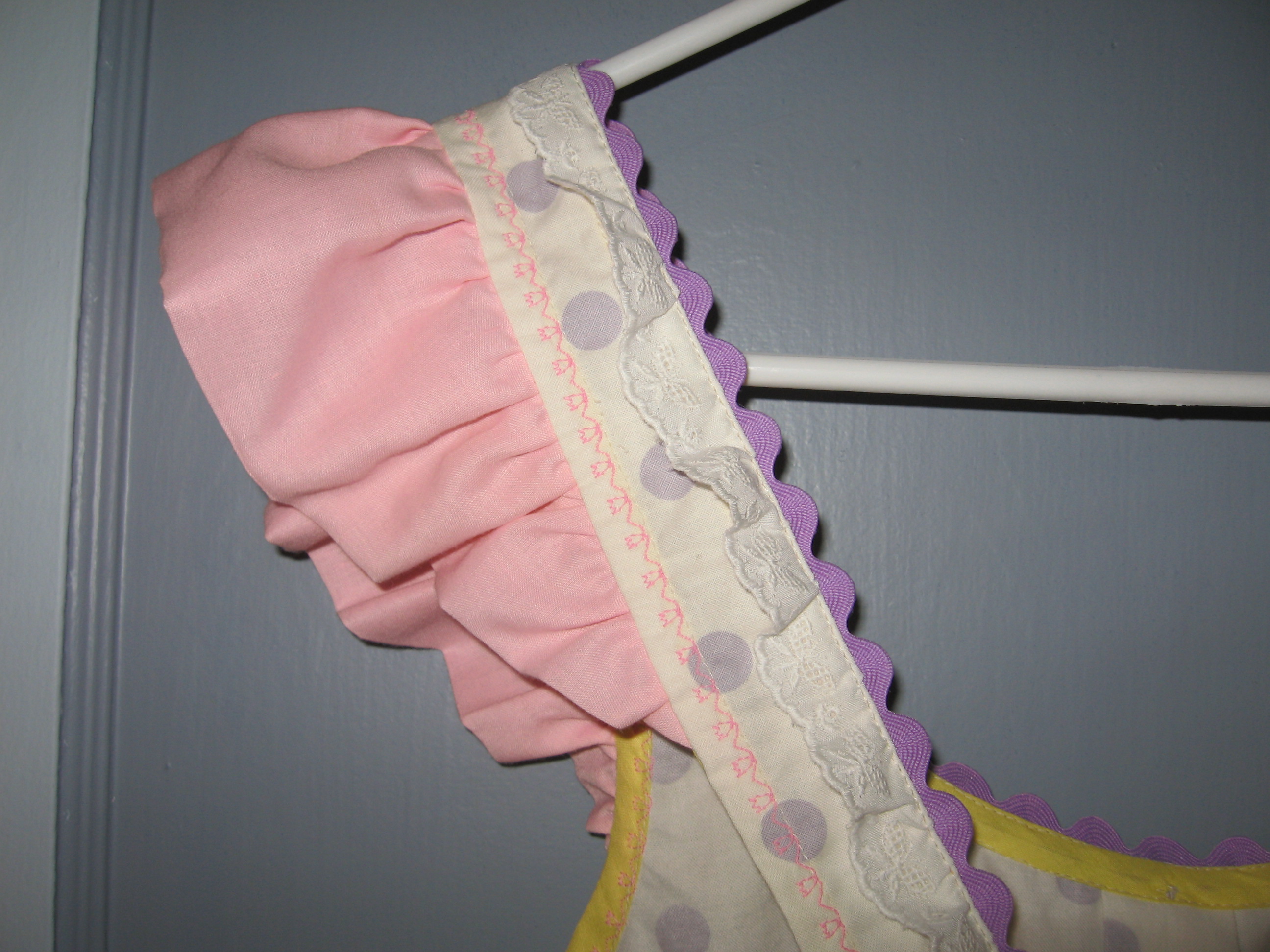 For many years, Ms. SpoolTeacher herself has haunted antiques and collectible’s shops. She even had a space in one at one time but realized it is all about Real Estate, and that seldom do the vendors actually create a living for themselves. But she did manage to hoard a collection of things that were worth more than they were asking for. This has long been her way of saving for the future, thinking that another day along her Road Less Traveled, she will have a shop again and sell these treasures for what they are really worth, along with her labor in the form of an already “very well made up and unique” apron from a vintage table cloth…